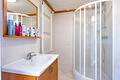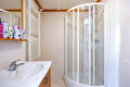 Overloop met 3 slaapkamers en badkamer met 2e toilet, douche en wastafelmeubel.