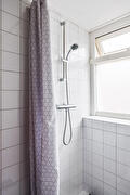 Ruime overloop, berging met CV-opstelling en een ruime slaapkamer met dakkapel voorzien van inbouwkasten en een badkamer met douche en wastafel.