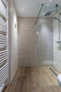 Overloop met toegang naar 3 slaapkamers en een moderne badkamer voorzien van inloopdouche, 2e toilet en wastafelmeubel.