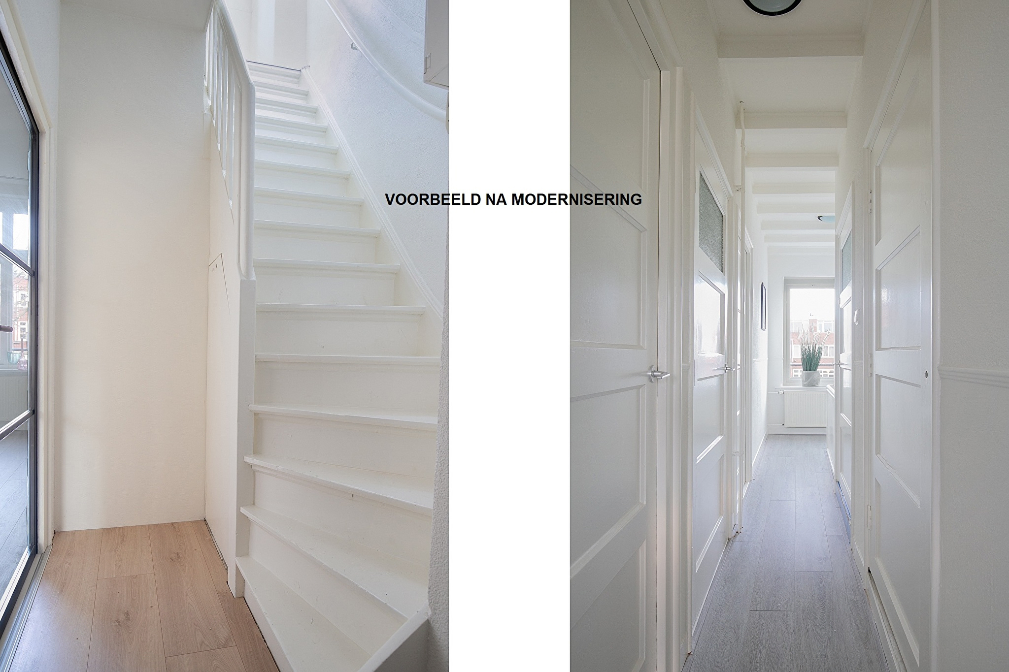 Het interieur is aan modernisering toe en is éénvoudig te veranderen in een parel van een woning op een prachtige locatie. Door het zelf te moderniseren heeft als grote voordeel dat alles geheel naar eigen smaak kan worden gerealiseerd en daarnaast zijn alle authentieke elementen nog aanwezig, zoals onder andere paneeldeuren en inbouwkasten. Ter illustratie een paar foto’s na modernisering.